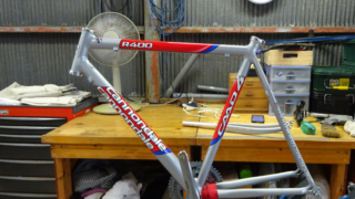新車バラシのまま20年近く放置してあったキャノンデールのフレームをローラー専用自転車として組みました。